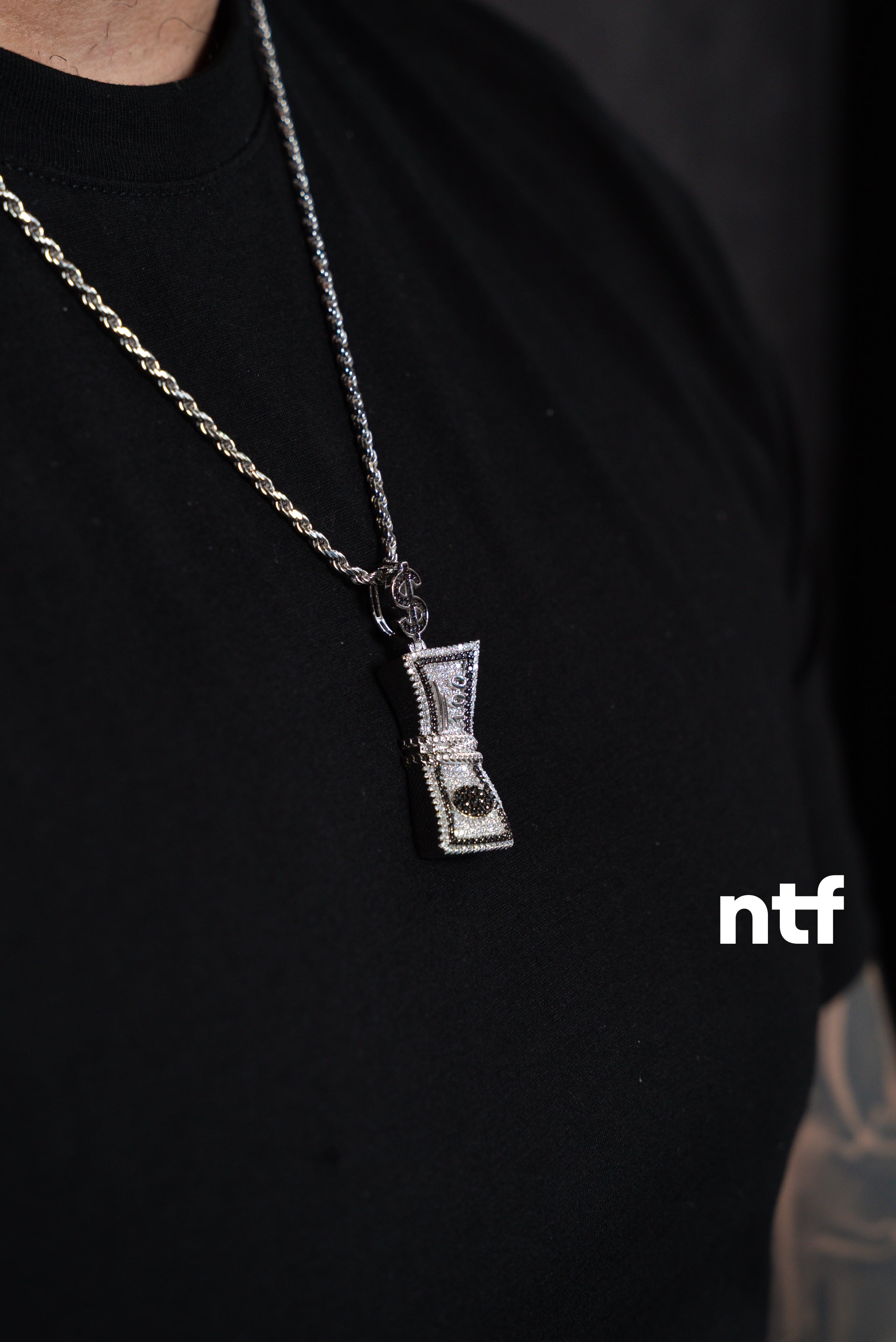 NTF Men’s Rope Chain & Stack of Bills Moissanite Pendant